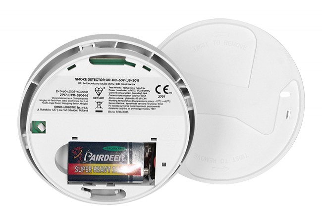 Bateryjny czujnik dymu ORNO, zasilanie 9V DC, (OR-DC-609)