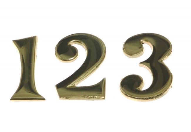 Opis - Cyfry mosiężne przybijane na gwoździki 7 cm