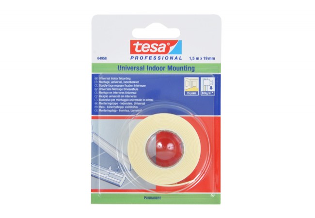 Opis - Dwustronna taśma montażowa piankowa Tesa Universal Indoor Mounting, biała, długość 1,5 m, szerokość 19 mm