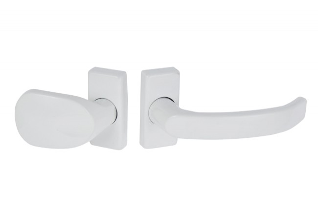 Gałko-klamka drzwiowa na szyldzie krótkim biała