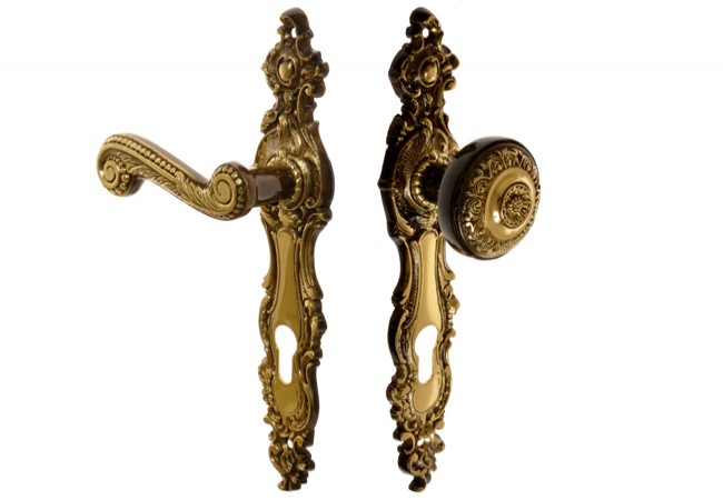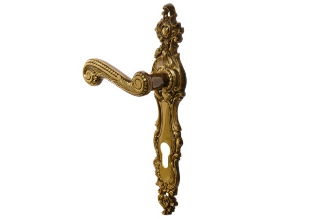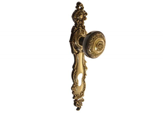 Klamko-gałki mosiężne będą pasowały zarówno do drzwi zewnętrznych, jak i wewnętrznych dworków i pałaców. Wytworna, roślinna ornamentyka pasuje do stylowych wnętrz w stylu retro i stanowi uzupełnienie ich aranżacji. Klamka doskonale komponuje się z surowymi, drewnianymi wykończeniami skrzydeł drzwiowych. Ozdobne klamko-gałki dostępne będą z zamknięciem na klasyczny klucz piórowy oraz z otworem na wkładkę cylindryczną. Długą żywotność i odporność na zmieniające się warunki pogodowe zapewnia tworzywo z jakiego została wykonane - mosiądz. Produkty są wykonywane ręcznie i dostępne są w większości przypadków - na specjalne zamówienie klienta. Istotną informacją jest to, iż gałko-klamka do drzwi wymaga określenia strony z jakiej powinien się znaleźć dany uchwyt. Warto sprawdzić przed zakupem jaka strona będzie potrzebna do Państwa drzwi. Podana cena obejmuje gałkę na stronę zewnętrzną i klamkę na stronę wewnętrzną drzwi.