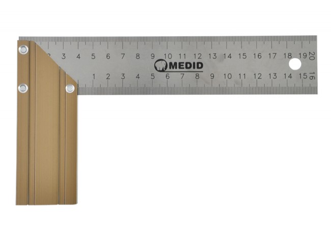 Kątomierz pomiarowy MEDID : długość 200 mm. Wykonany ze stali nierdzewnej.
