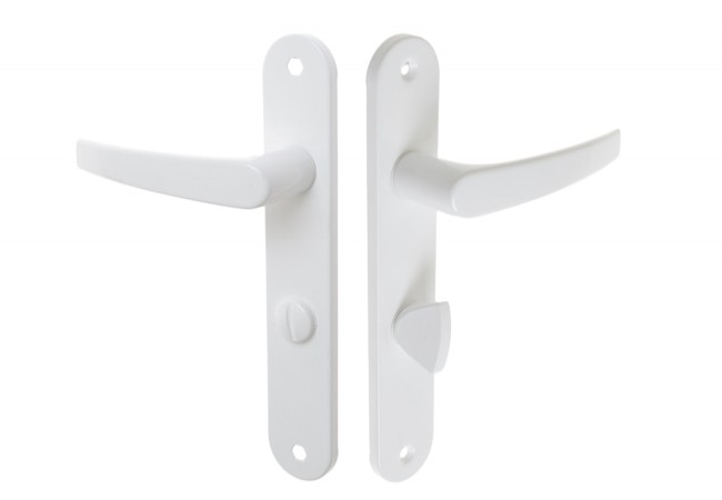 Opis - Klamka drzwiowa GAMAR METRO 72 WC biała ze sprężyną (do wyczerpania zapasów)