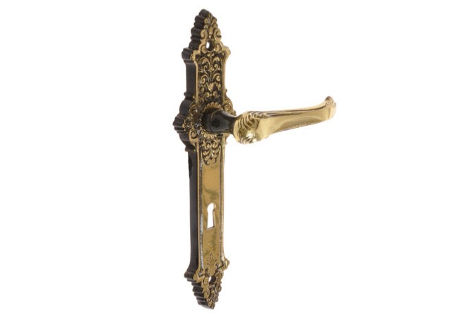 Piękne i zdobne na tyle, że same w sobie mogą stanowić element wystroju wnętrza. Ich błyszczące wykończenie z pewnością będzie przykuwać wzrok przechodniów i cieszyć ich oczy. Mimo postarzanego wyglądu klamki te są wysoce ergonomiczne i usprawniają korzystanie z drzwi wewnętrznych. Ozdobne klamki na długim szyldzie nie tylko będą pasować do wnętrz kościołów i pałaców, ale także domów urządzonych i przyozdobionych w klimacie Art Deco. Mosiądz to przecież jeden z najtrwalszych i najbardziej szlachetnych surowców służących do wykonywania klamek drzwiowych. Zapewnia on nieporównywalną trwałość i odporność produktów na uszkodzenia. Zamknięcia występują w wersji WC, na wkładkę cylindryczną oraz klasyczny, gruby klucz. Dzięki specjalnym śrubom zawartym w zestawie instalacja klamki jest bezproblemowa. Podana cena obejmuje klamkę na stronę zewnętrzną i wewnętrzną drzwi.