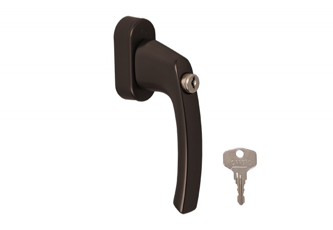 Opis - Klamka okienna z kluczem Flensburg F8707/brąz