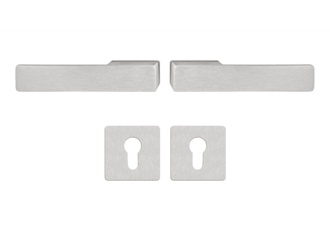 Opis - Klamka z szyldem ukrytym Axa LIBERA z rozetą WB, klasa 3, kolor F6 - stal nierdzewna