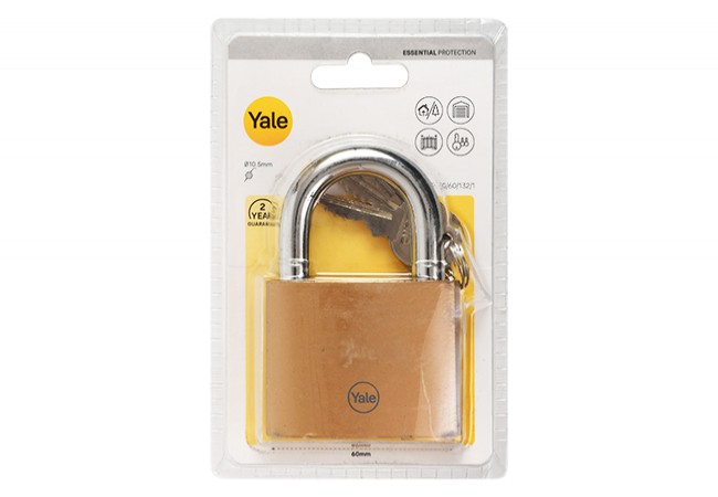 Opis - Kłódka pałąkowa żeliwna zatrzaskowa YALE YE11G/60/132/1 złota 60mm blister