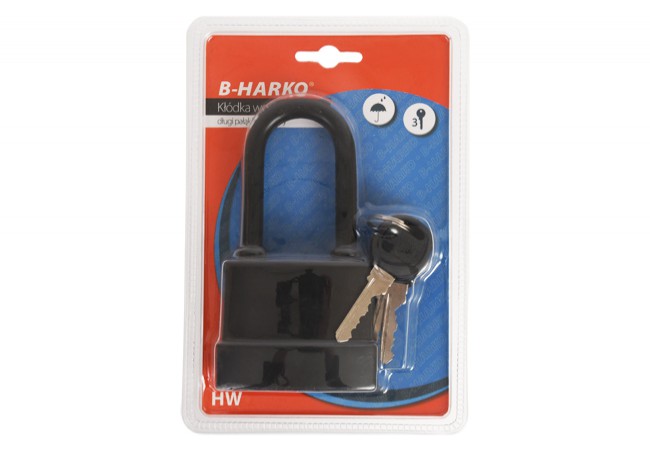 Opis - Kłódka wodoodporna 55mm HW55L B-Harko, długi pałąk, 3 klucze