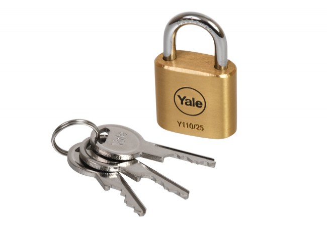 Opis - Kłódka Yale 25 mm mosiądz Y110/25/115/1, wzmocniony pałąk, 3 klucze