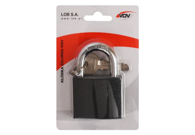 Kłódka żeliwna zatrzaskowa KSV30 z hartowanym pałąkiem BLISTER