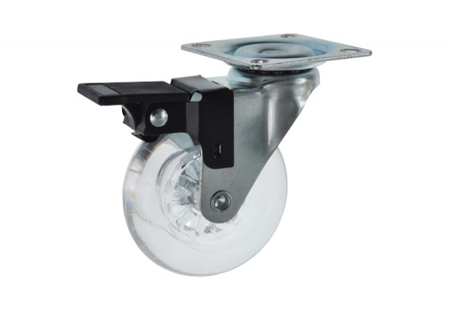 Kółko meblowe przezroczyste 50 mm z płytką i hamulcem (nośność do 35kg)