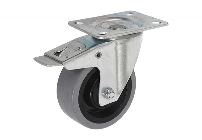 Koło skrętne fi 80 na płytce z hamulcem szara guma (nośność 120 kg)