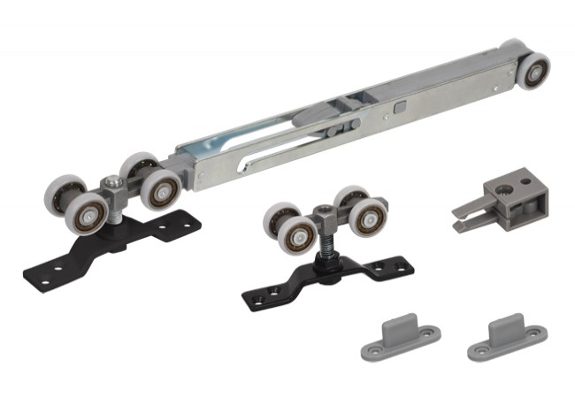 Opis - Komplet wózków IRON z 1 domykaczem do 1 drzwi (max.60 kg), czarny
