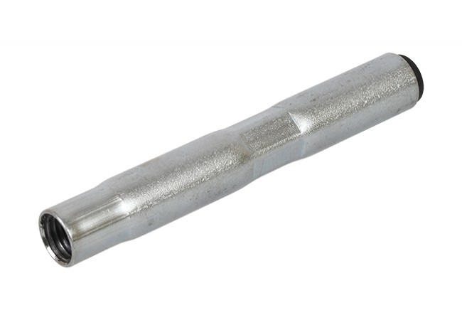 średnicę na której długości znajduje się gwint wewnętrzny w który można wkręcić zawias. Kotwa posiada wyprofilowane obwodowo przewężenie zmniejszające średnicę, stanowiące punkt kumulacji materiału wiążącego, ułatwiając zespolenie kotwy z podłożem. Zaślepka kulista na końcu kotwy ułatwia równomierne rozprowadzenie materiału wiążącego na boki podczas umieszczania w otworze.