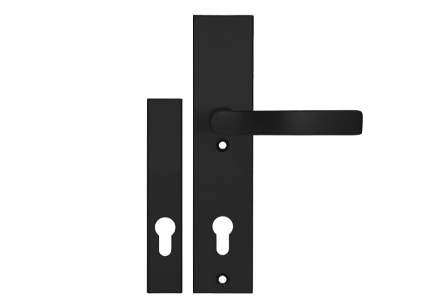 Wąski, nie rzucający się w oczy szyld od strony zewnętrznej połączony jest przelotowo z klamką od strony wewnętrznej.