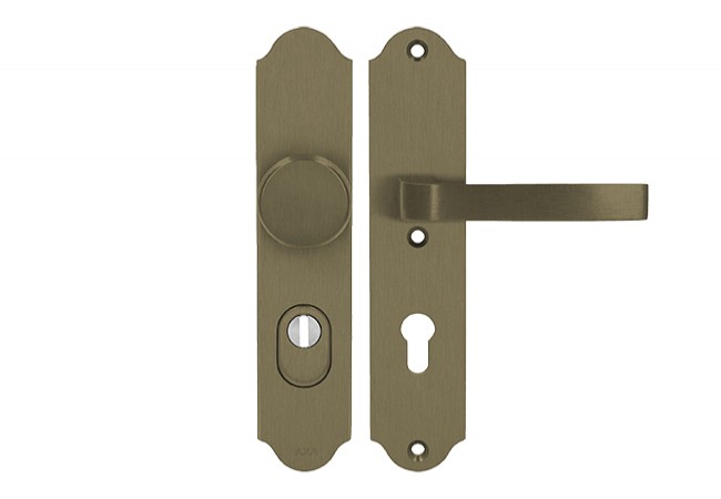 Pochwyt-klamka Axa Verona++ 72 WB klasa 3 z zabezpieczeniem wkładki FLEX, kolor F4 - stare złoto (grubość drzwi 74-83 mm)