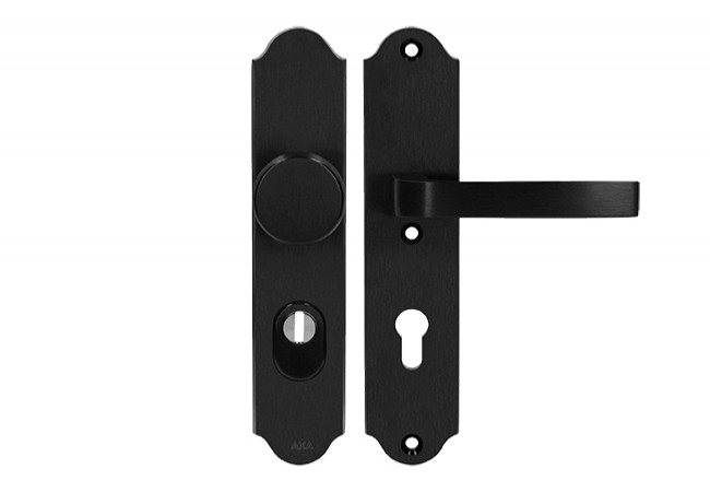 Opis - Pochwyt-klamka Axa Verona++ 72 WB klasa 3 z zabezpieczeniem wkładki FLEX, kolor F8 - czarny (grubość drzwi 74-83 mm)