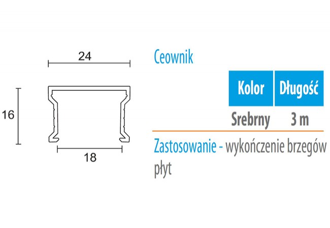 Opis - Profil WC 01 Ceownik (grubość płyty 18 mm ) -3m aluminium anoda
