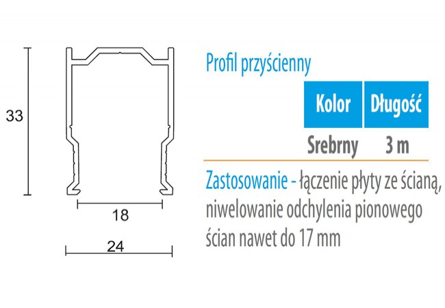Opis - Profil WC 01G przyścienny (grubość płyty 18 mm) -3m aluminium anoda