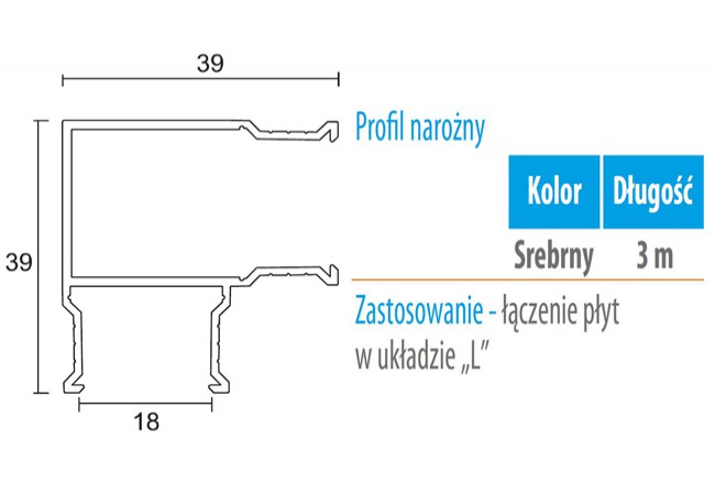 Opis - Profil WC 02N narożny (grubość płyty 18 mm) - 3m aluminium anoda