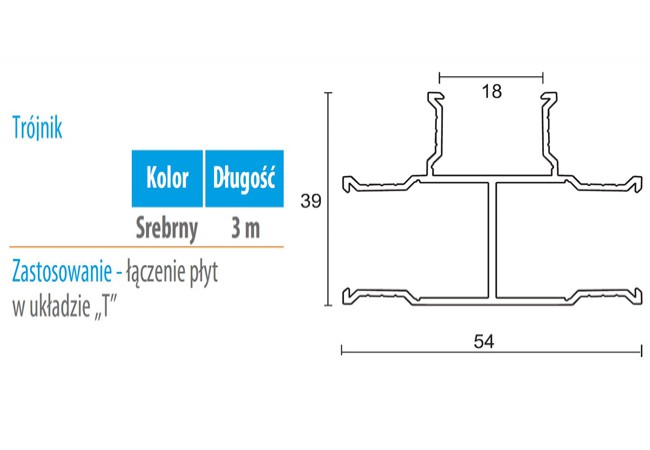 Opis - Profil WC 03 trójnik (grubość płyty 18 mm) -3m aluminium anoda