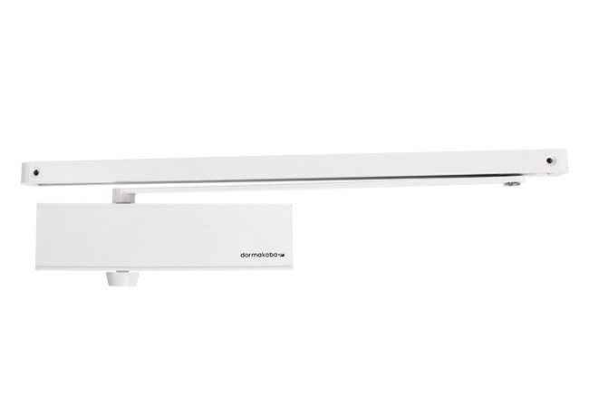 Opis - Samozamykacz DORMA TS 80 z szyną ślizgową biały (maksymalna waga drzwi do 60 kg, maksymalna szerokość skrzydła 950 mm)