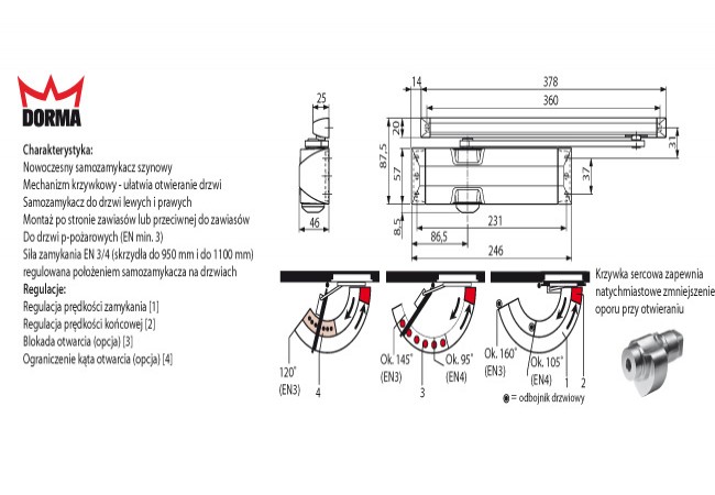 - Siła zamykania (wg PN-EN 1154) EN 3/4