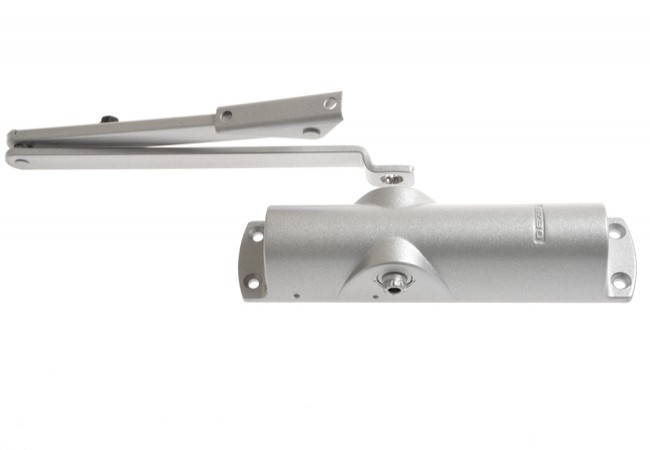 Opis - Samozamykacz GEZE TS 1000 C z ramieniem srebrny EN 2/3/4 (skrzydło do 60 kg,max.szer.1100 mm)