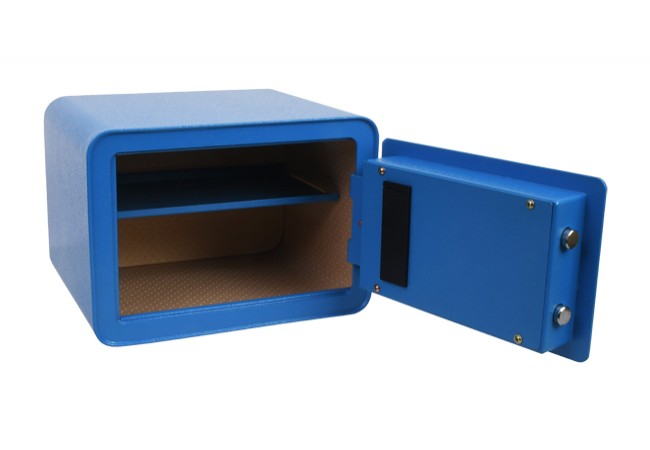 Opis - Sejf Office RC-350 z zamkiem elektronicznym (350x280x250 mm) zaokrąglony, niebieski