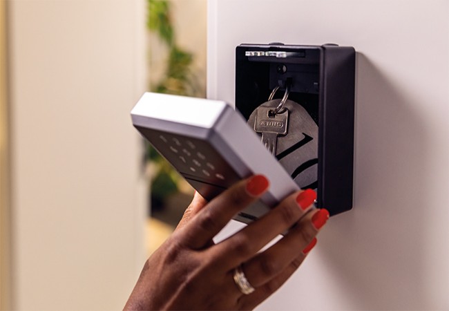 KeyGarage Smart-BT Abus z Bluetooth to skrytka na klucze w której można przechowywać aż do 20 kluczy naraz.Świetny sposób na udzielenie dostępu w wypożyczalni pojazdów, dla osób wynajmujących lokale, osób korzystających z usług opiekunek dla dzieci, którym często muszą przekazywać klucze do domu Łatwy i szybki montaż produktu w niemal każdym miejscu to ogromna zaleta. Właściciel może ją otworzyć za pomocą Bluetooth, wygenerować elektroniczny bilet udzielający wstępu lub wysłać SMS-em 6-cyfrowy pin otwierający skrytkę. Bezpieczniejsze szyfrowanie AES-128-Bit sprawi, że nikt bez waszej wiedzy nie otworzy schowka Abus KeyGarage samodzielnie.