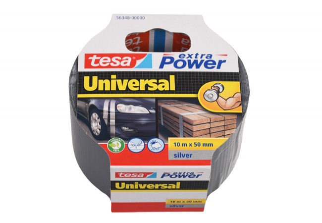 Srebrna taśma naprawcza Tesa Extrapower przeznaczona do stosowania na zewnątrz oraz wewnątrz pomieszczeń. Wzmacniana tkaniną. Świetna przyczepność do wszystkich rodzajów powierzchni. Odporna na czynniki atmosferyczne.
