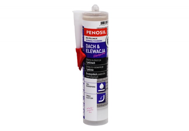 Silikon hybrydowy PENOSIL Dach&Elewacja to niezwykle elastyczny i szybkoschnący produkt, który w ciągu zaledwie dwóch godzin tworzy wiązanie w pełni odporne na działanie warunków atmosferycznych. Deszcz w żaden sposób nie wpływa na jego wydajność, a uszczelniacz zachowuje swoją trwałość, przyczepność i elastyczność przez lata.