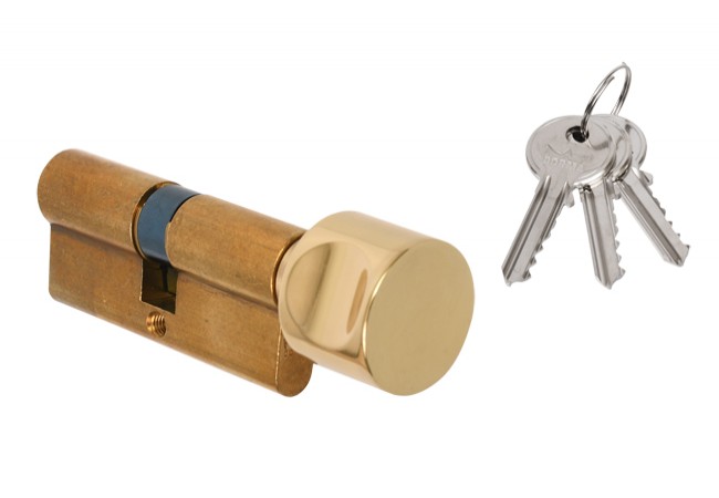 Opis - Wkładka bębenkowa DORMA DEC 150 60G/40, z gałką okrągłą mosiądz, 3 klucze