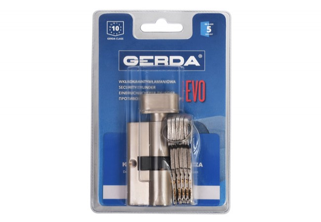 Opis - Wkładka Gerda EVO 30g/30 nikiel satyna z gałką 5 kluczy atestowana klasa 5.1 B, blister