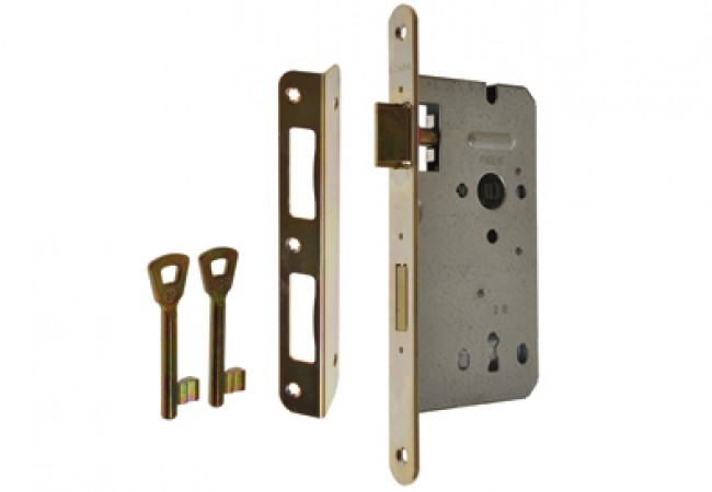 Zamek drzwiowy GERDA ZW100 90/50 na klucz, ocynk złoty