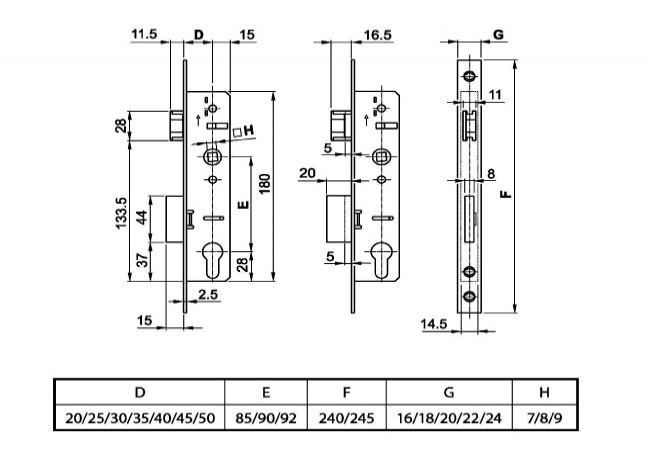 Opis - Zamek EUROPORTAL 92/30/22/8/240 INOX z blachą zaczepową(kpl.)