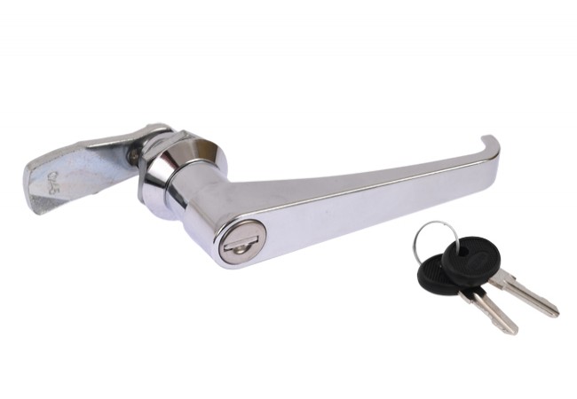 Zamek krzywkowy z uchwytem typu ,,L" , zamak chromowany, klucz typu ,,Euro", język prosty (111-1-1-05-30)