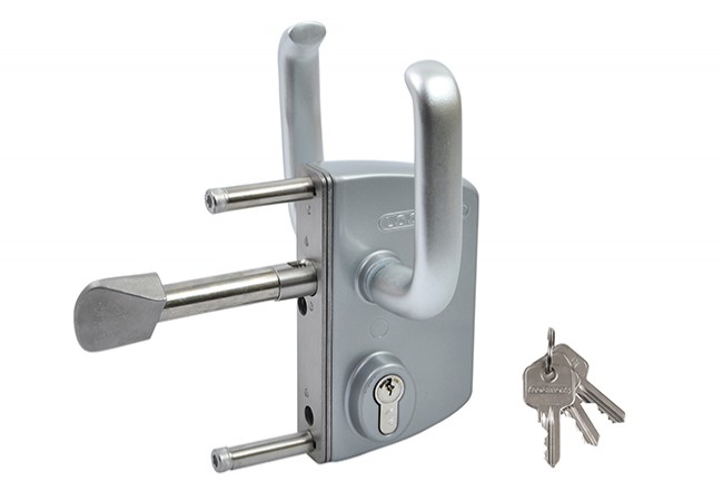 Zamek Locinox LSKZ do bram przesuwnych, mechanizm INOX, wkładka VSZ, klamka aluminium, RAL 9010 (profil kwadratowy 100x100)