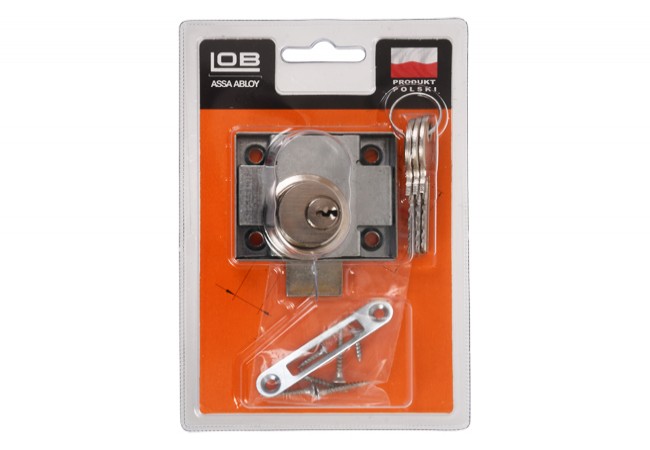 Opis - Zamek meblowy bębenkowy LOB ZMB-2 lewy nikiel BLISTER
