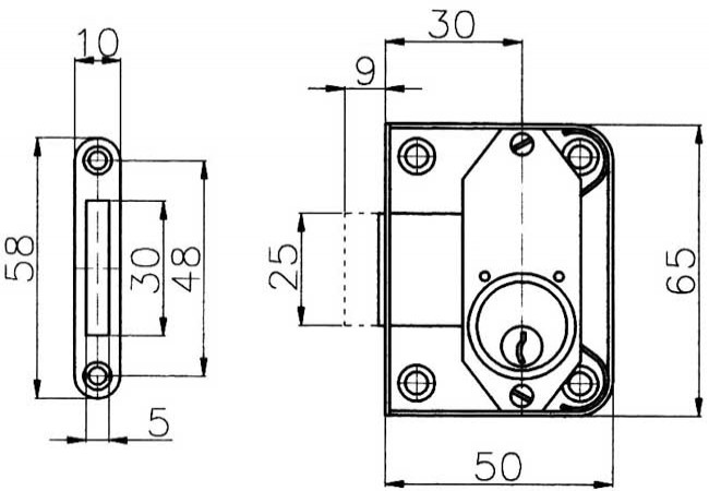 Opis - Zamek meblowy patentowy Metalplast Częstochowa 30 K prawy, mosiądz