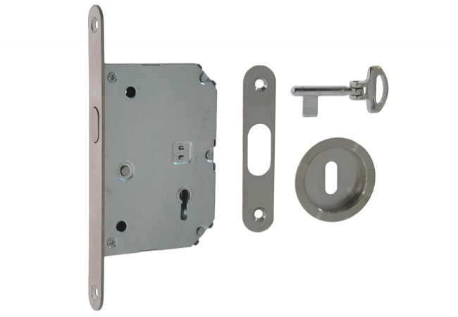 Opis - Zamek na klucz do drzwi przesuwnych z uchwytem okrągłym fi55 satyna