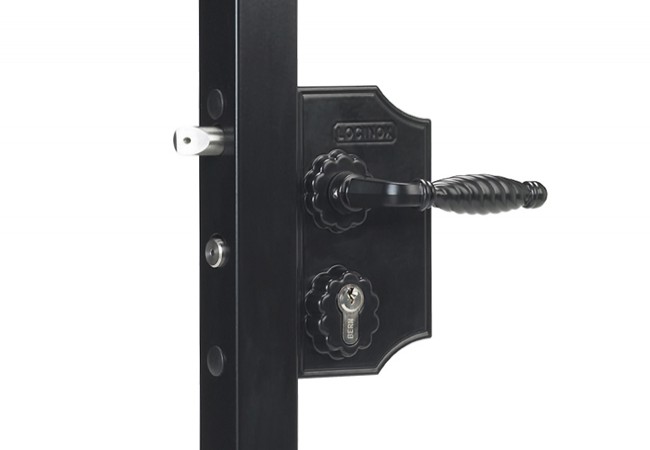Opis - Zamek ozdobny LAKQ Locinox do furtek z klamką na profil 40 mm, czarny RAL 9005
