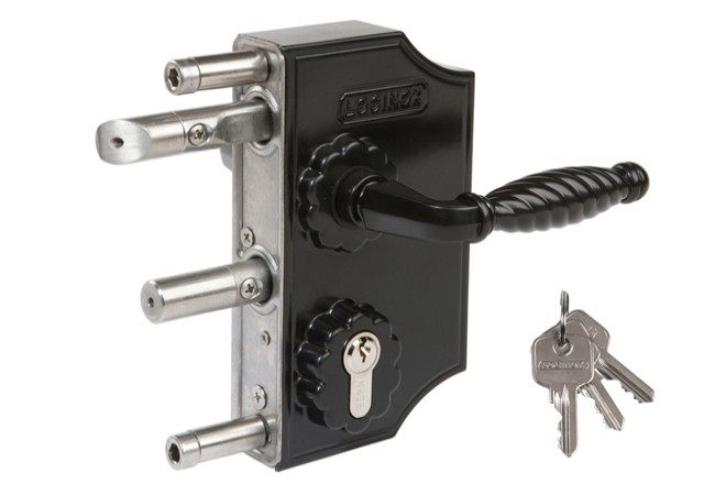 Opis - Zamek ozdobny LAKQ Locinox do furtek z klamką na profil 40 mm, czarny RAL 9005