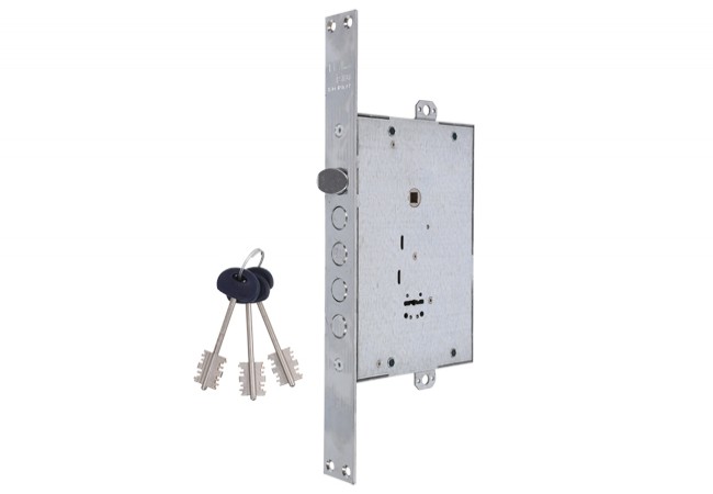 Zamek rozporowy ISEO 648, 3 klucze dwupiórowe 105 mm, rozstaw 85 mm, chromowany