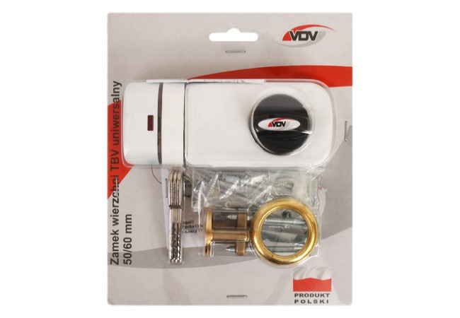 Opis - Zamek uniwersalny 50 i 60 TBV56-11 biały BLISTER