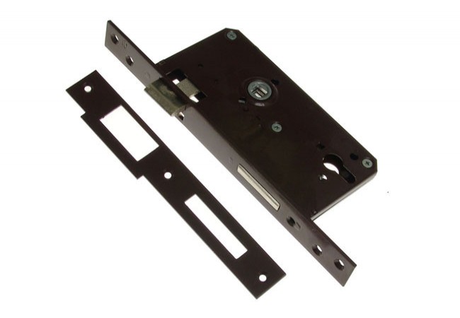 Opis - Zamek wpuszczany bramowy 90/63,5 wkładka z dźwignią lakier prawy