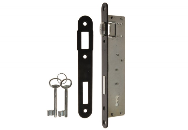 Opis - Zamek wpuszczany wąski rolka 90/22 KL, z zaczepem JANIA Z078, lakier czarny