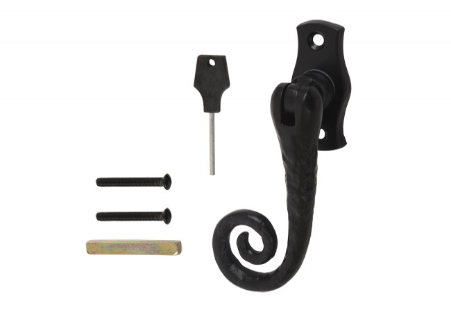 Czarne okucie okienne w kształcie zawiniętego ogona małpki znajdzie zastosowanie między innymi w karczmach, gospodach czy schroniskach górskich. Rustykalny design klamek wpasuje się doskonale w każde wnętrze w stylu wiejskim. Klamki typu Monkey Tail będą miały duży wpływ na odbiór oprawy okien, drzwi balkonowych czy tarasowych nadając określony klimat całemu pomieszczeniu. Klamka wyposażona jest w dodatkową blokadę otwarcia regulowaną kluczem imbusowym. Funkcja ta jest szczególnie przydatna gdy musimy opuścić lokal na dłużej, a chcemy mieć pewność, że klamki pozostaną na stałe zablokowane. Mocna, stalowa konstrukcja będzie mieć wpływ na dłuższą żywotność produktu. W komplecie z klamką znajdziemy: trzpień, dwie śruby pokryte czarną powłoką oraz kluczyk imbusowy. Produkt występuje w wersji prawej i lewej.