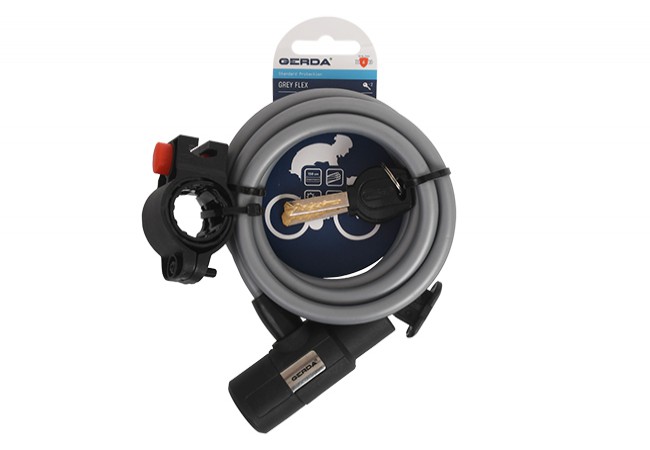 Zapięcie rowerowe GERDA GREY FLEX 1000/10V, szaro-czarne, linka z uchwytem transportowym
