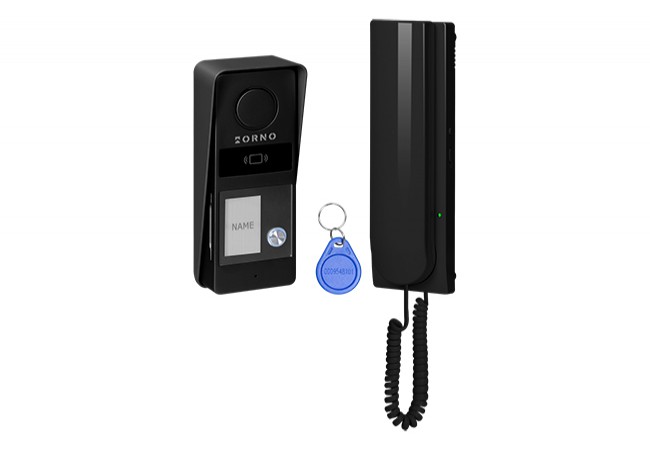 Zestaw domofonowy Orno ATIN jednorodzinny z możliwością zbliżeniowego otwarcia, 2 żyłowy, RFID, czarny